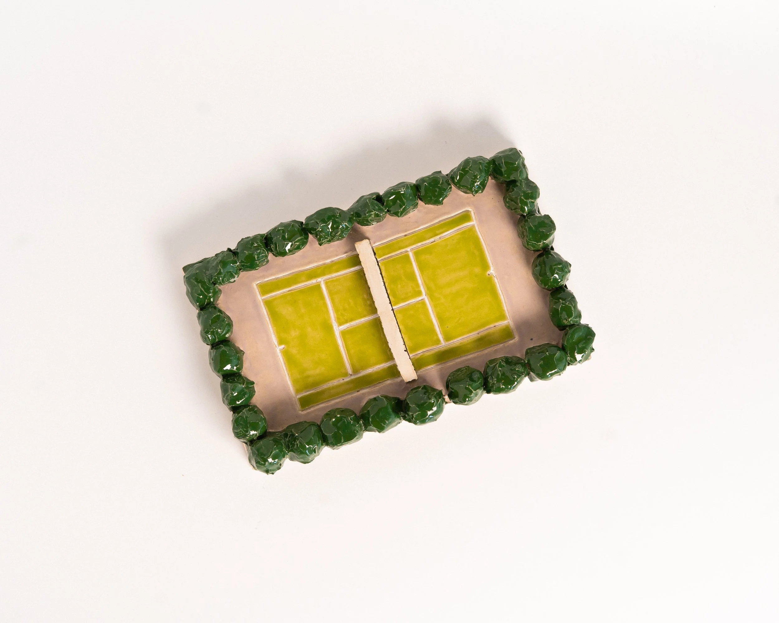 Tennis trinket tray modeled after a backyard tennis court.